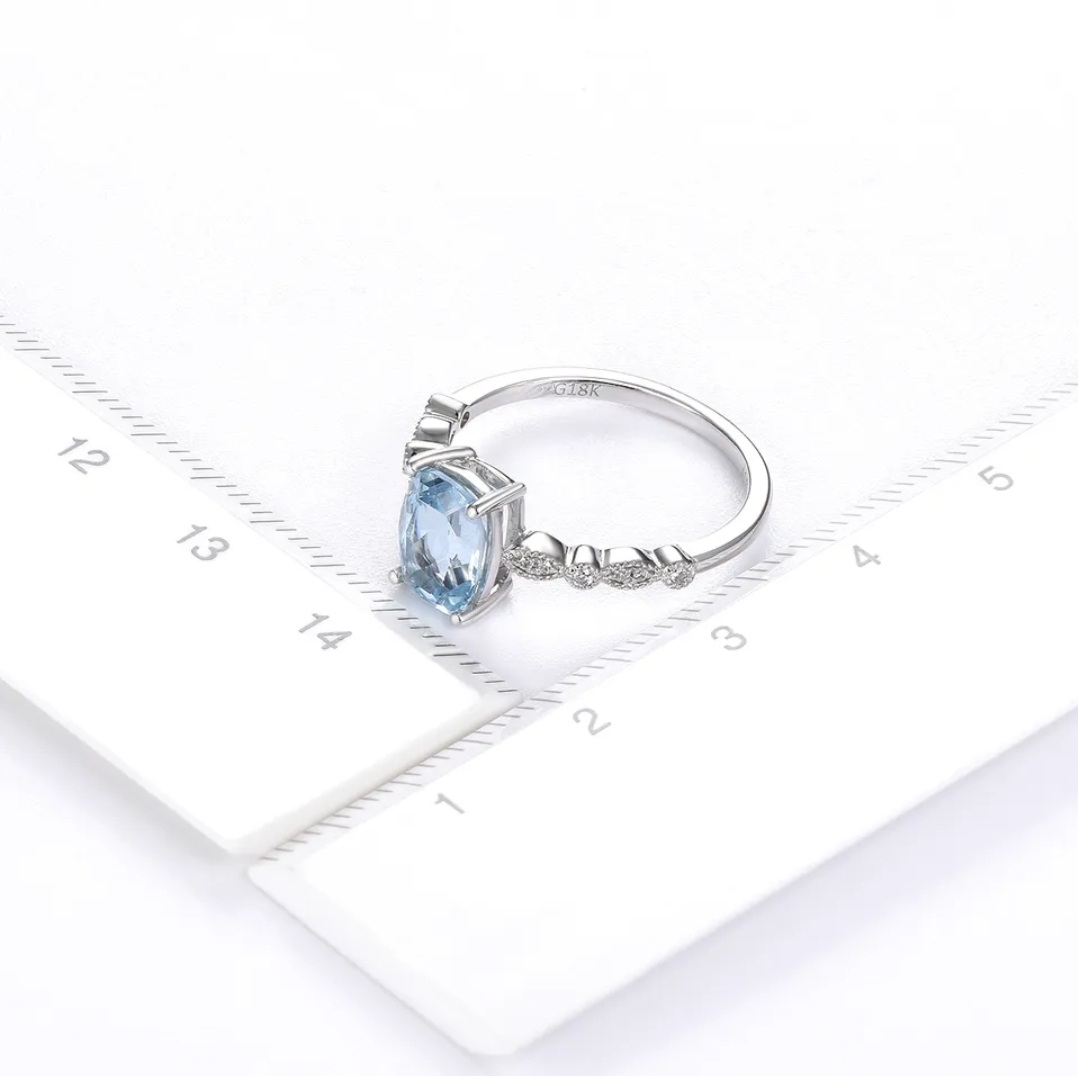 This Aquamarine & Diamond 18k White Gold Ring 1.32ctw is the epitome of class and elegance. The natural Aquamarine and dazzling Diamonds accentuate each other beautifully, making this a stunning statement piece that will never go out of style.