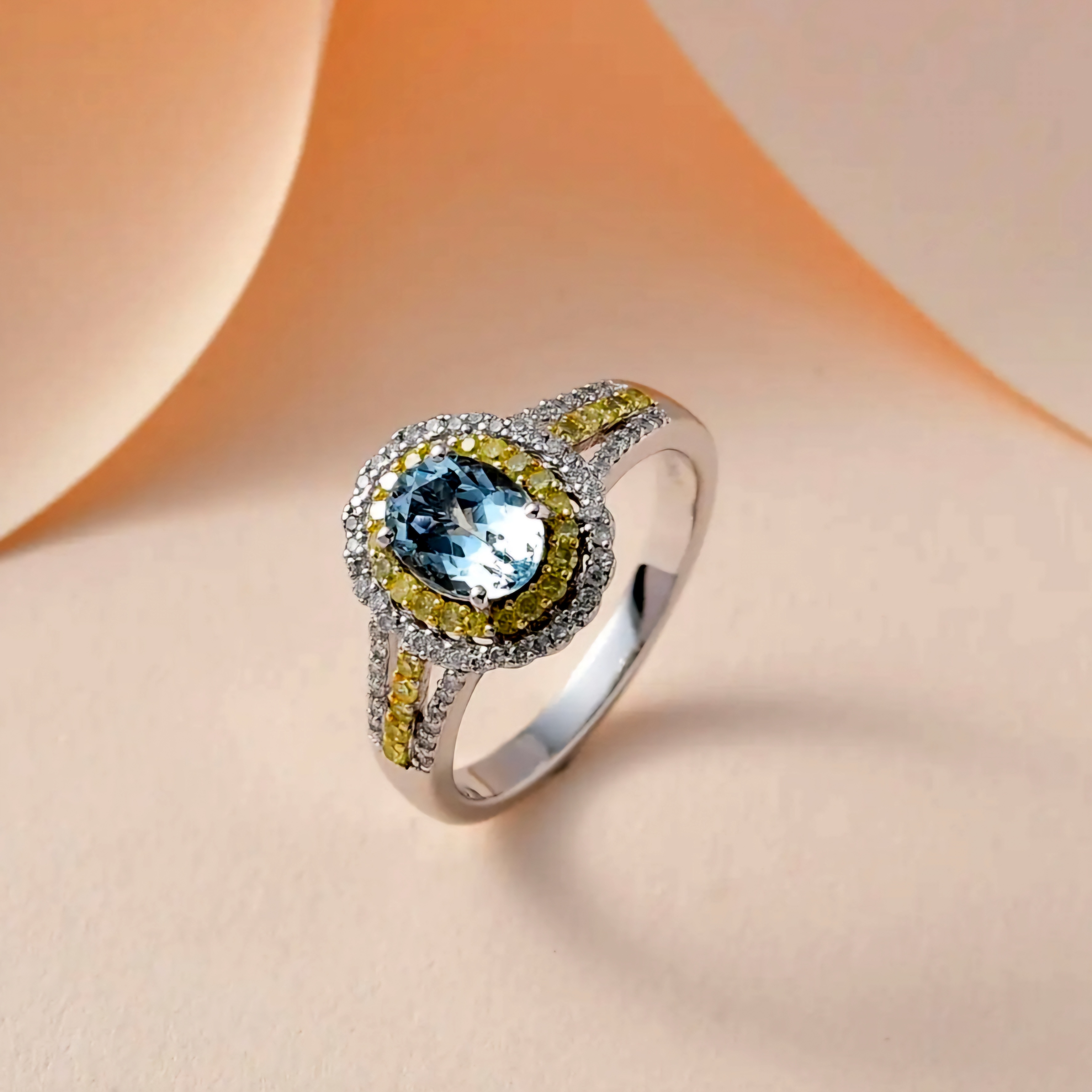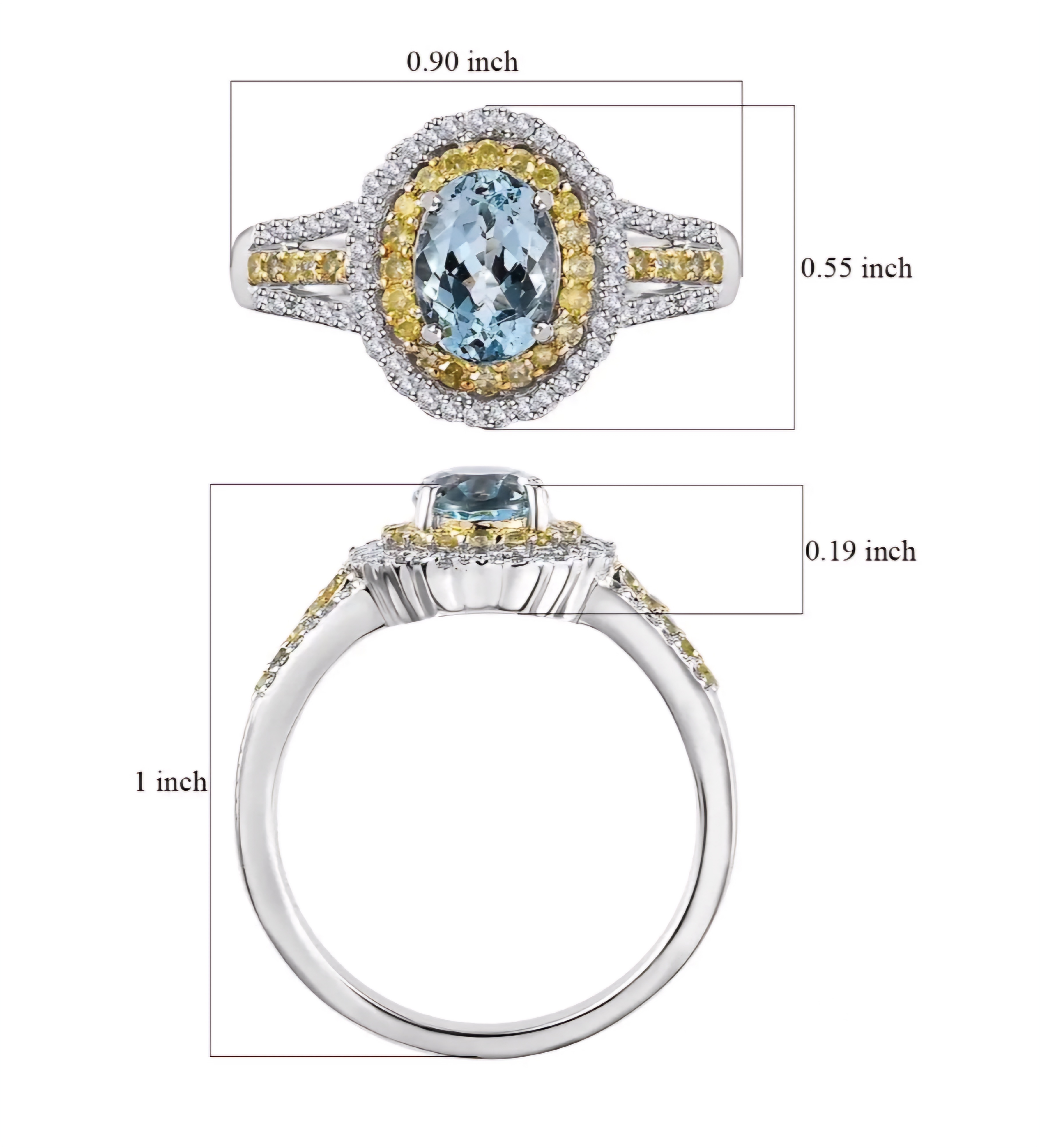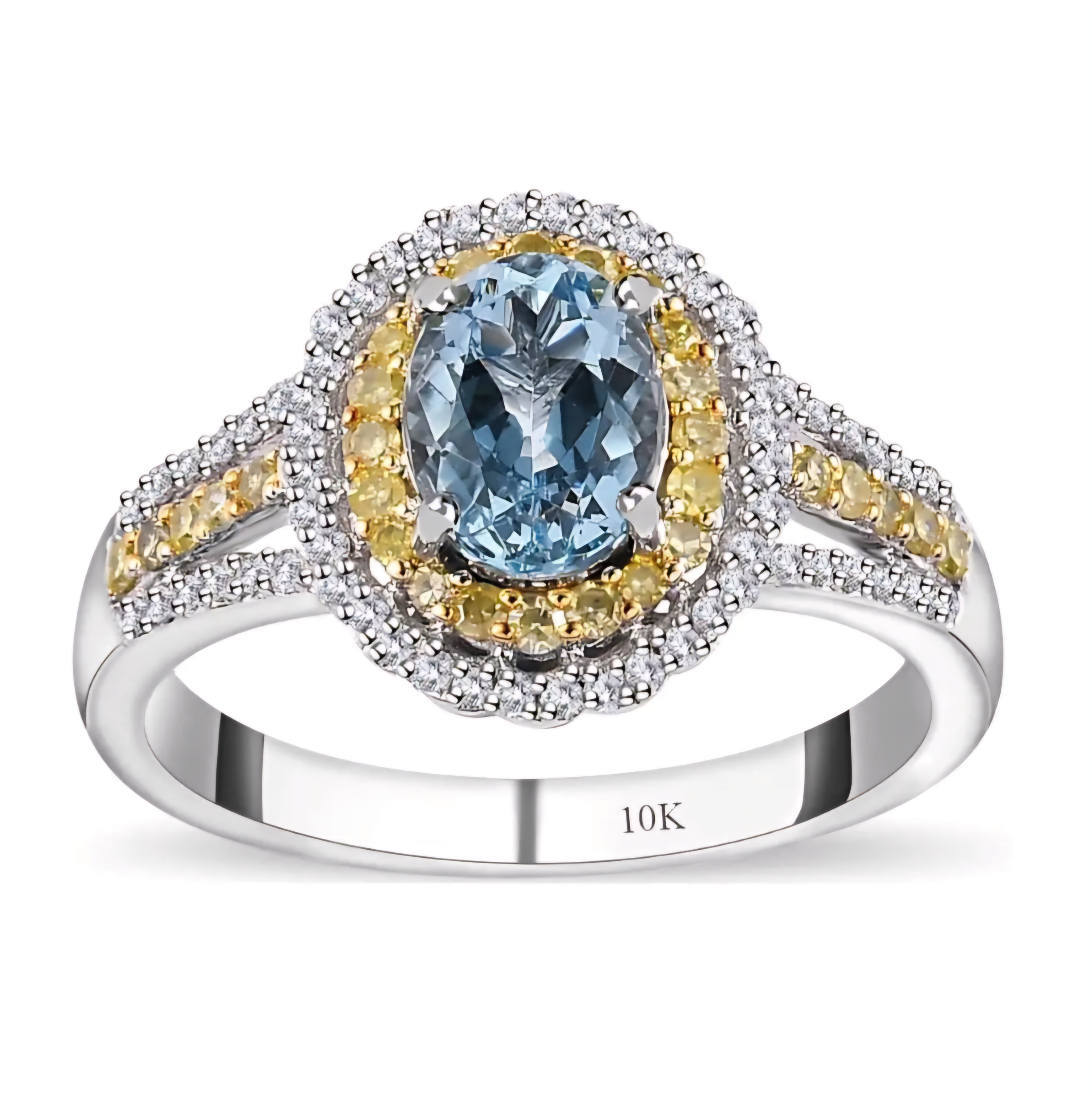 Enhance your jewelry collection with this exquisite Aquamarine, Yellow Diamond & White Diamond Ring in 10K White and Yellow Gold 1.65ctw. Crafted with precision and elegance, the stunning combination of aquamarine, yellow diamonds, and white diamonds creates a mesmerizing sparkle that is sure to captivate attention.