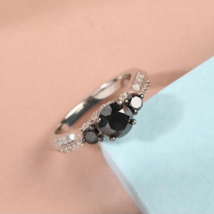 Introducing our exquisite Black Diamond & White Diamond Trilogy Ring, crafted in Rhodium over Sterling Silver and adorned with a total of 1.50 carats of sparkling gemstones. This timeless piece is a symbol of elegance and sophistication, showcasing the contrast between the dazzling black diamonds and the brilliant white diamonds. Designed to capture attention, this stunning ring is perfect for special occasions or as a unique and cherished gift.