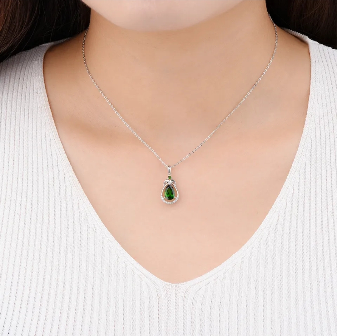 Looking for a unique and eye-catching piece of jewelry? Look no further than this Chrome Diopside & Diamond Pendant Necklace in 14k White Gold. The vivid green of the natural Chrome Diopside stone is set off beautifully by the 14k White Gold and shimmering Diamonds. Whether you're looking to treat yourself or someone special, this necklace is the perfect way to make a statement.