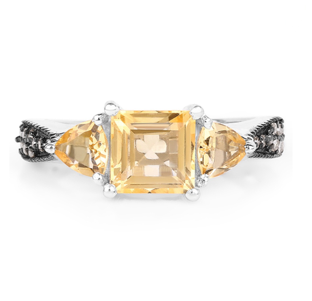 Embark on a journey of opulence with the Citrine & Champagne Diamond Three Stone Ring in Rhodium over Sterling Silver 2.67ctw. Witness the magnificence of the captivating citrine, believed to possess exhilarating energy and invigorating warmth. The luxurious trio of stones, complemented by dazzling champagne diamonds, evokes a sense of refined beauty and grandeur. Expertly crafted with impeccable artistry, the rhodium over sterling silver band accentuates the brilliance of the gemstones, elevating this ring to an exquisite work of art. Ignite your passion for luxury with this remarkable statement piece that effortlessly epitomizes grace and prestige.
