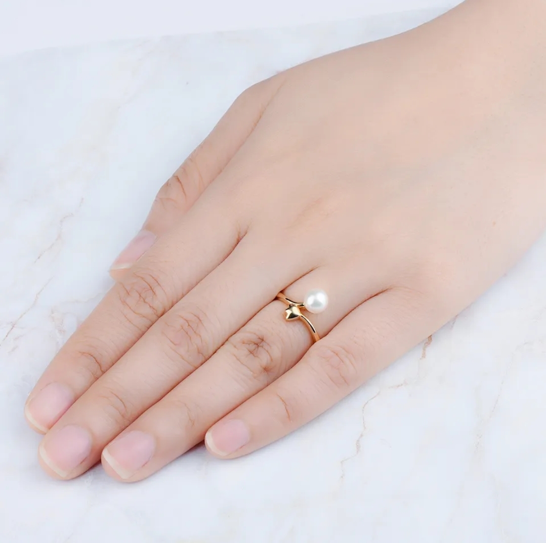 Treat yourself to this aesthetically pleasing, cute Freshwater Pearl Bypass Ring. Gently resting on a Sterling Silver base lavishly coated in 18K Yellow Gold, a luminescent freshwater pearl act as beautiful focal point. This dainty piece beautifully embodies the essence of minimalist jewelry by offering a simple yet elegant look. It's perfect for adding a refined touch to your daily ensemble or to navigate the arena of an evening soiree with effortless grace.