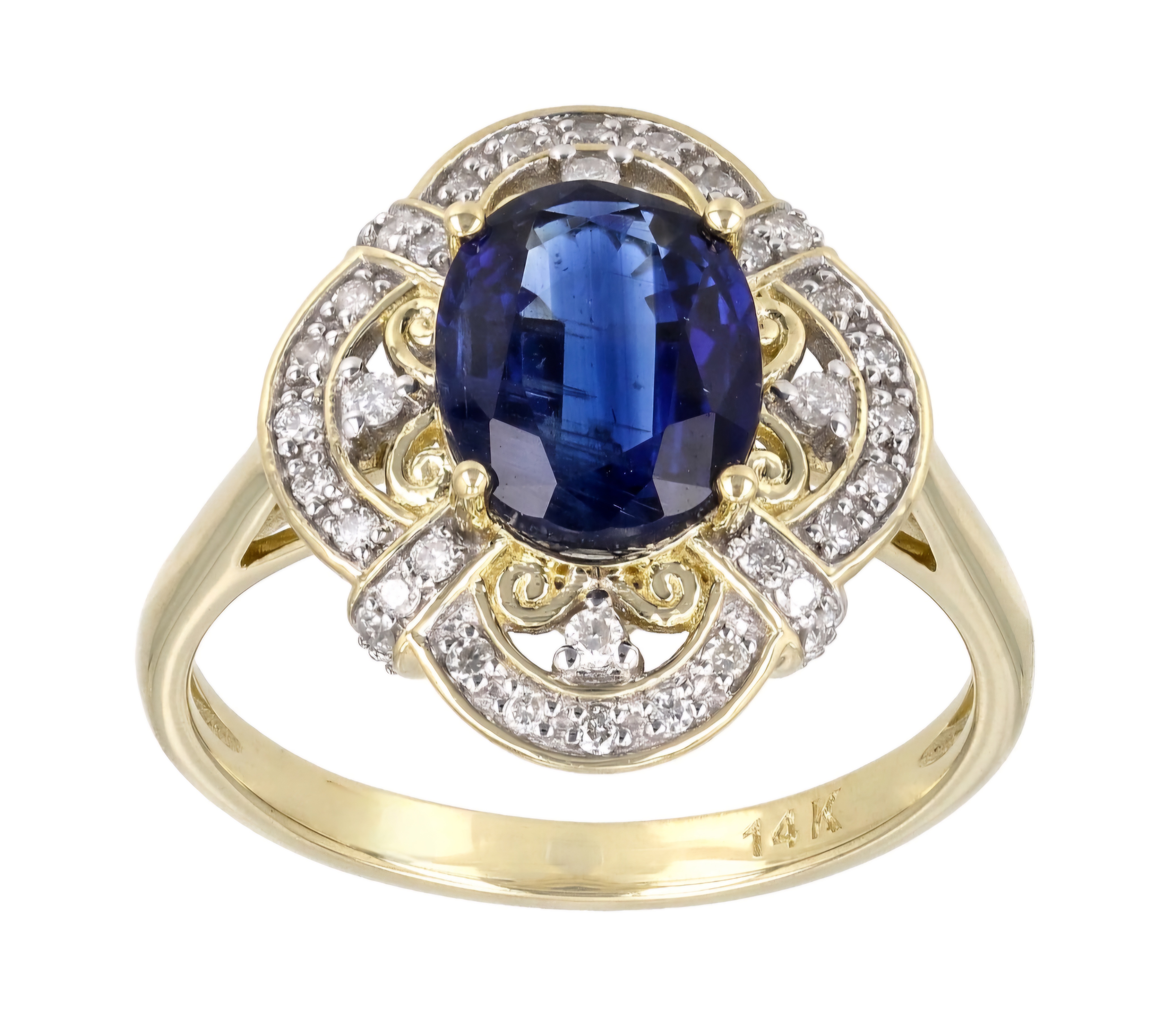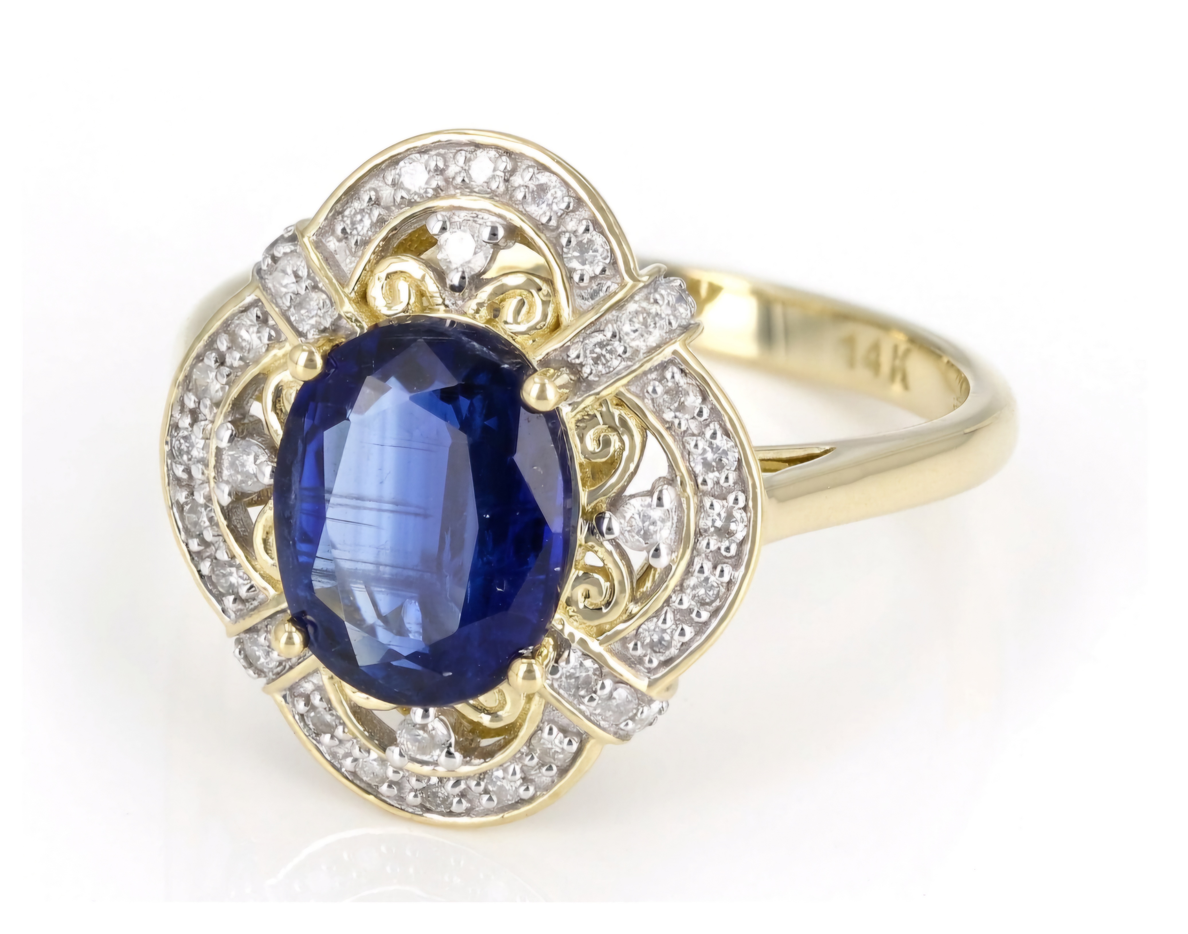 Elevate your jewelry collection with this exquisite Kyanite & Diamond Ring In 14K Yellow Gold 2.40ctw. Crafted with precision and care, this stunning ring showcases a vivid blue kyanite stone accented by dazzling diamonds, all set in luxurious 14K yellow gold. Perfect for adding a touch of elegance to any outfit, this ring is sure to become a cherished staple in your wardrobe.