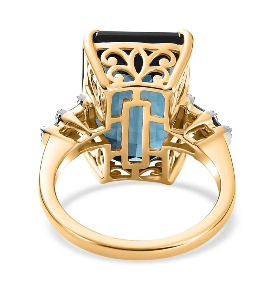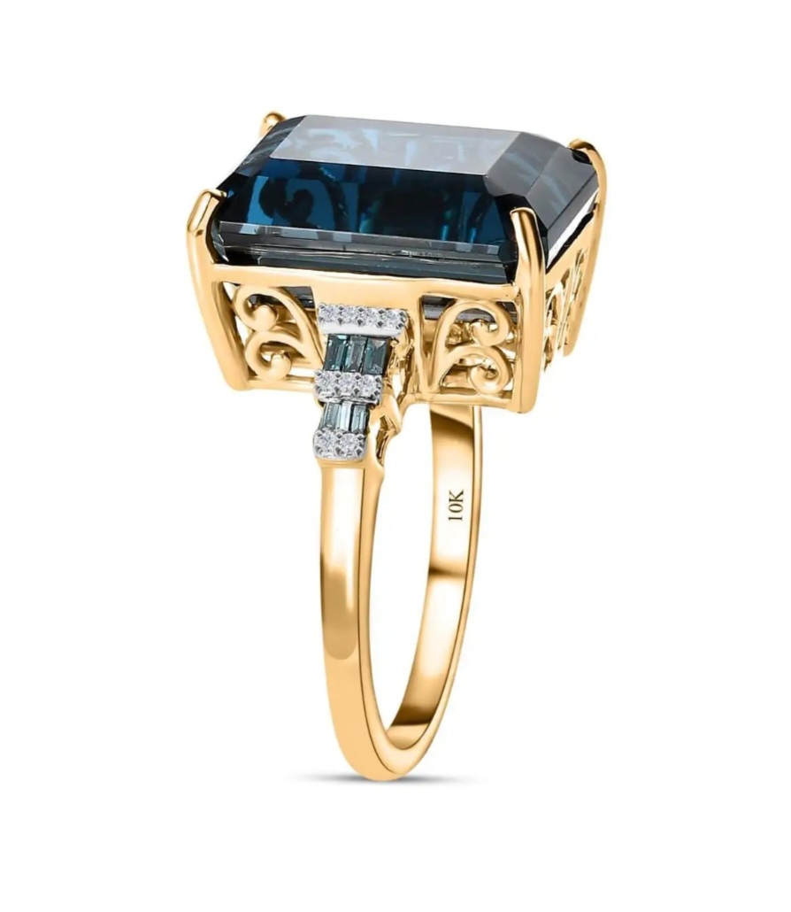 Introducing the London Blue Topaz, Blue Diamond & White Diamond Ring in 10K Yellow Gold 16.20ctw, the ultimate gemstone extravaganza! This ravishing ring brings together the rich allure of London Blue Topaz, the icy elegance of Blue Diamonds, and the timeless beauty of White Diamonds. Crafted in heavenly 10K Yellow Gold, it's a match made in jewel heaven. Prepare to turn heads and steal the spotlight with this dazzling ring that boasts a stunning 16.20 carat total weight. Slip it on your finger and feel the power of gemstone magic!