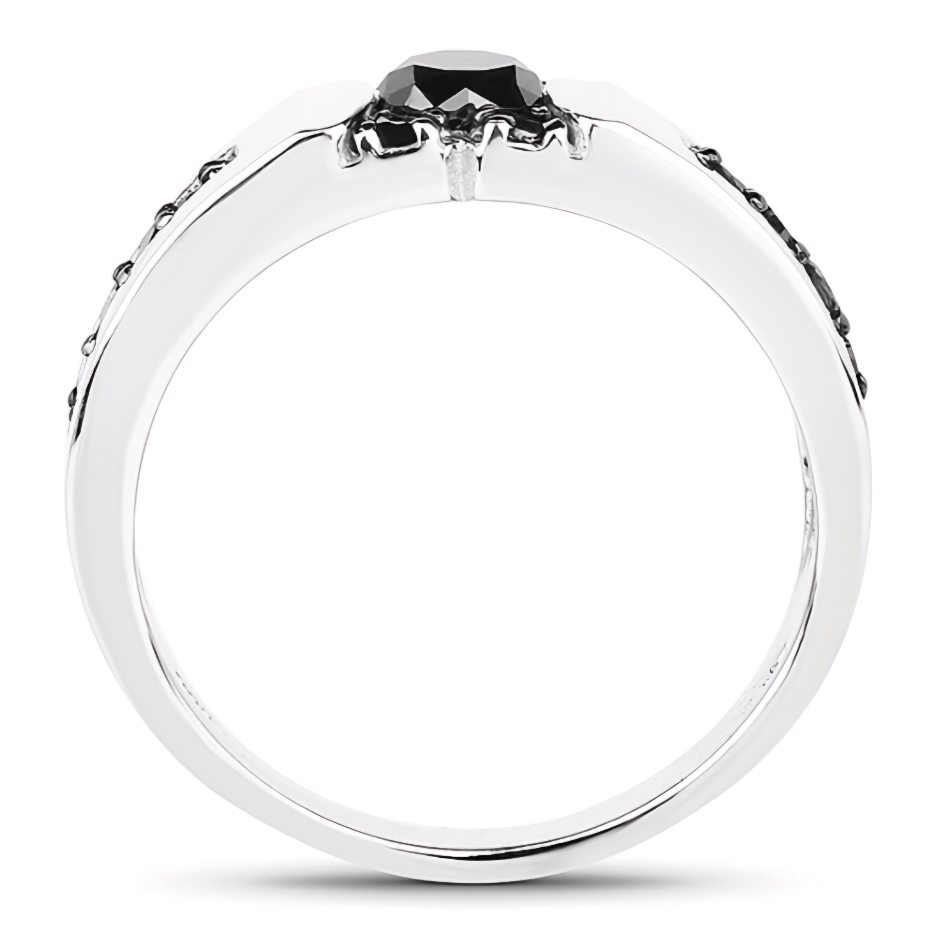 Stand out from the crowd with this Men's Black Diamond Band Ring. Featuring a 5mm round black diamond center and a unique X design, this modern ring exudes a cool and edgy vibe. The round black diamond accents that line down the shank sides complete the look of this stylish piece.