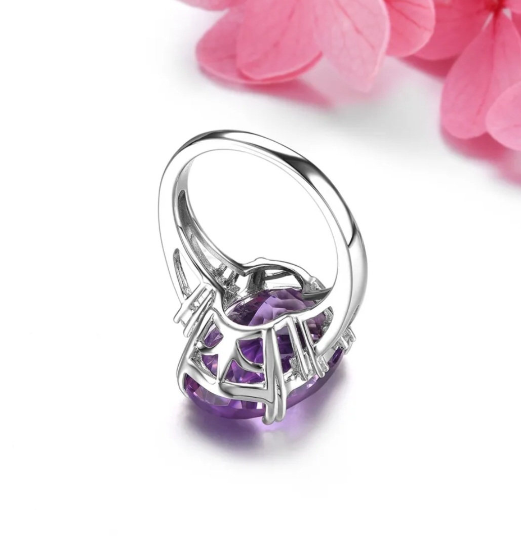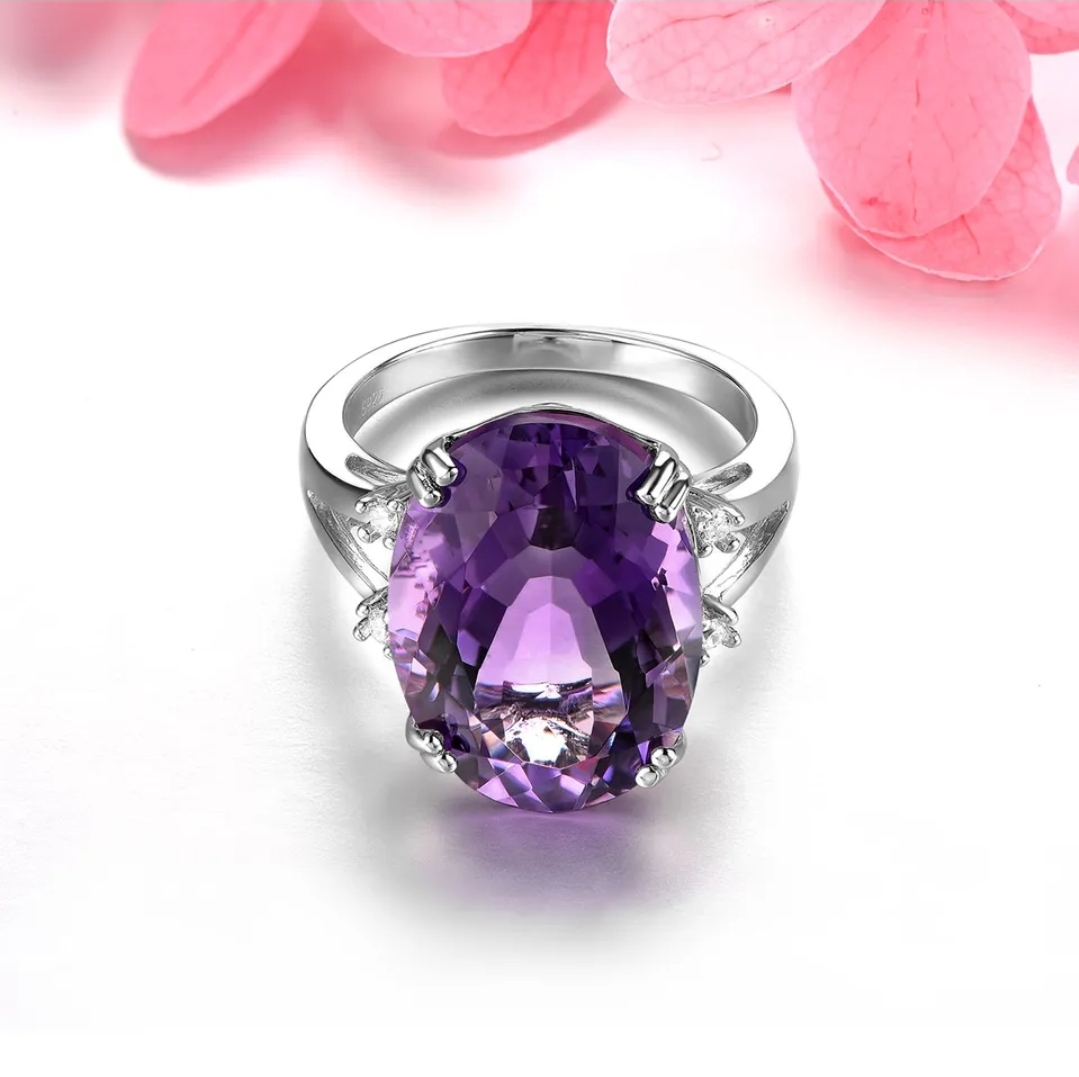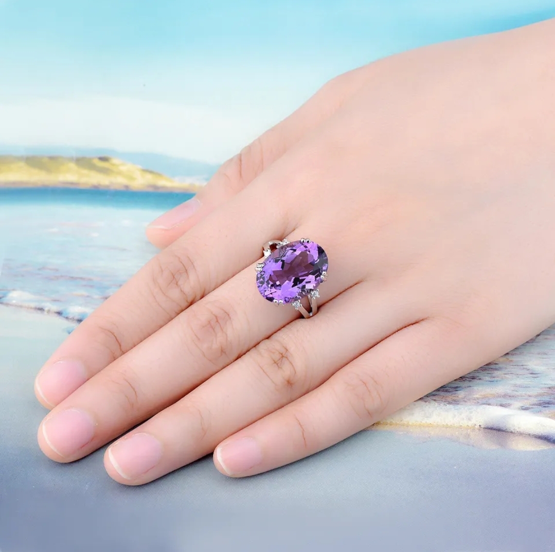 Discover the epitome of elegance with the Rich Dark South African Amethyst and White Zircon Oval Solitaire Ring. Elevating the traditional solitaire cut, this masterpiece features an 11.5 carat gemstone that radiates bold depth and rich color. The rhodium over sterling silver band adds a contemporary twist, while the delicate white zircon accents enhance the brilliance of the amethyst. This ring is the ideal accessory for a poised and polished look, whether you're attending a lavish soirée or seeking to elevate your personal style on any given day.