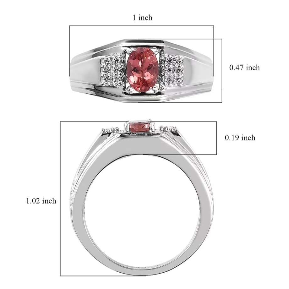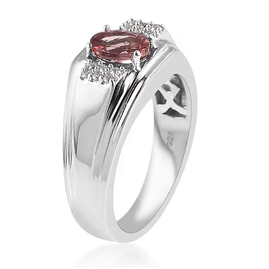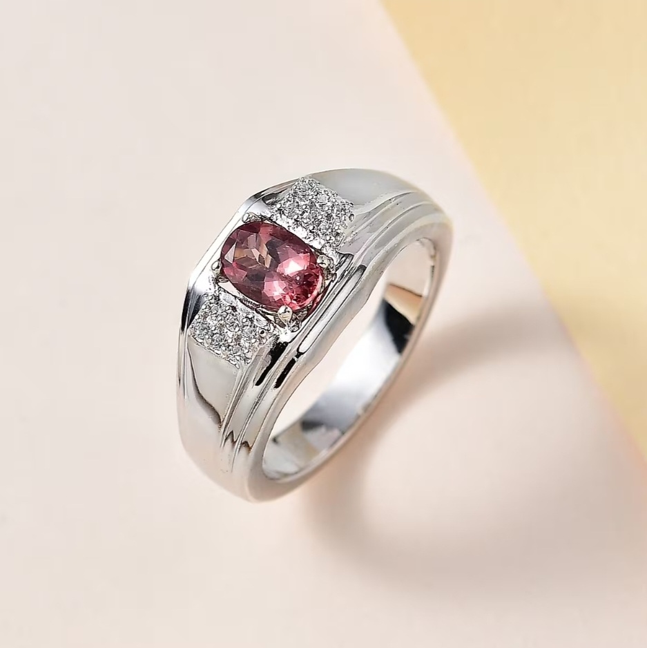 At the center, an oval pink apatite introduces a distinctive pop of color while maintaining a refined, masculine profile. The stone’s soft pink tone is balanced by its modest size and structured setting, giving the ring character without excess.