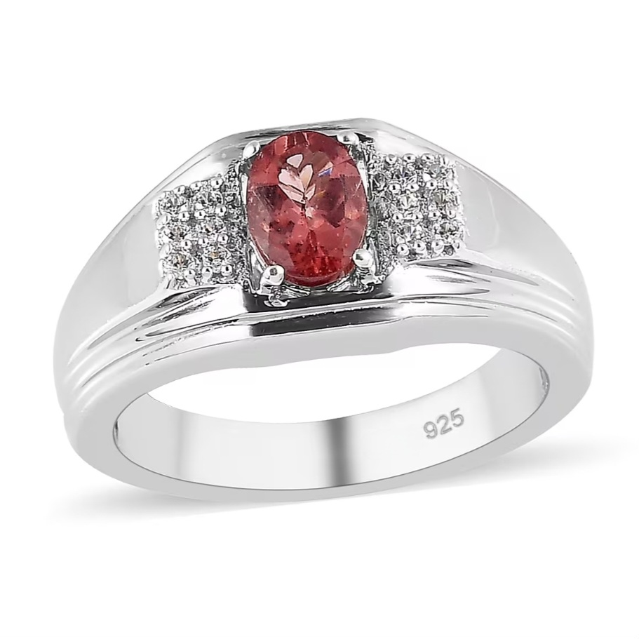 White zircon accents are set into the shoulders, adding subtle brightness and definition while keeping the focus on the center stone. Their placement reinforces the ring’s symmetry and provides contrast without overwhelming the design.