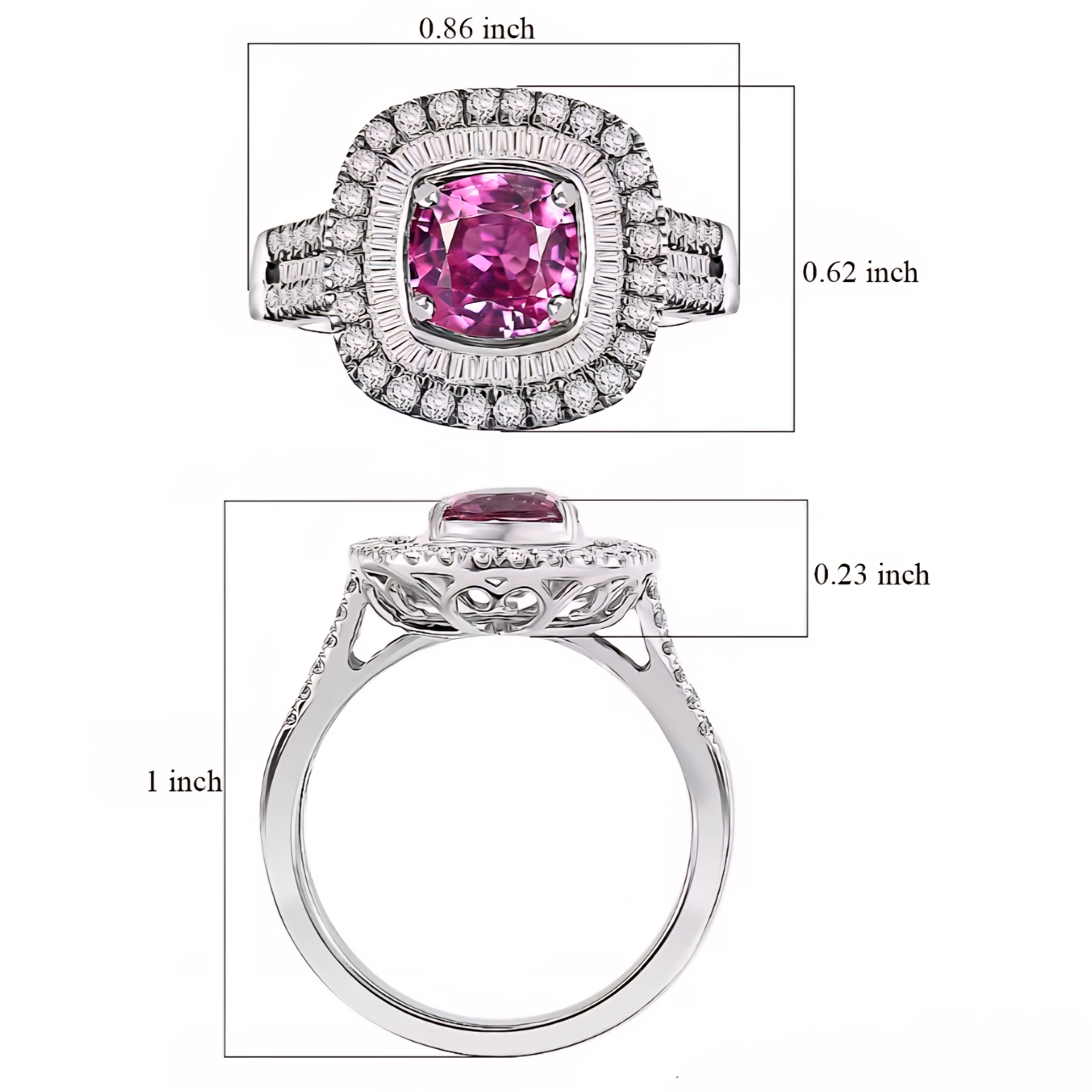 A 6mm square cushion pink sapphire displays beautiful color thats balanced precisely between warmth and brilliance. The color reads rich and alive, never flat.