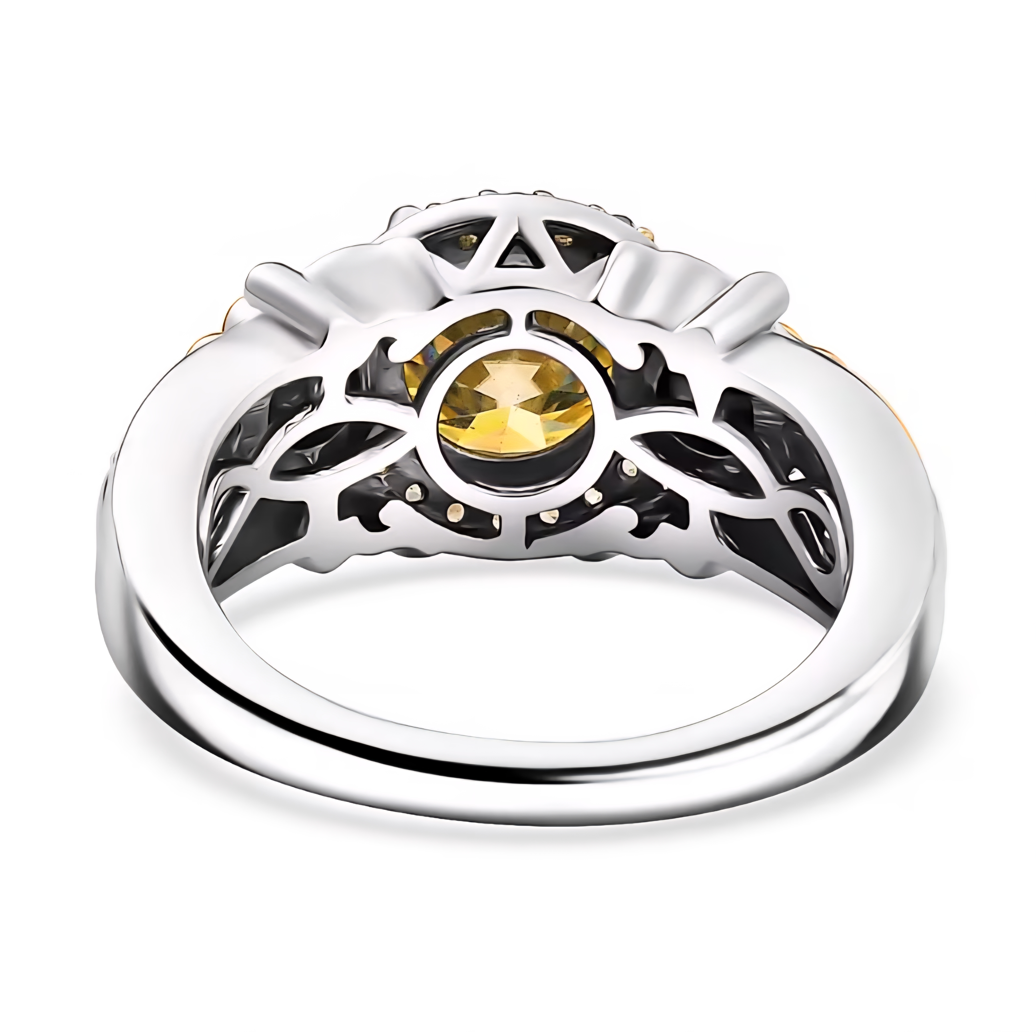 Finished in a striking mix of rhodium and 18K yellow gold over sterling silver, the sculpted flower motif feels intentional, not decorative. Bold color, controlled sparkle, and strong metal presence make this ring unmistakably JTVON.