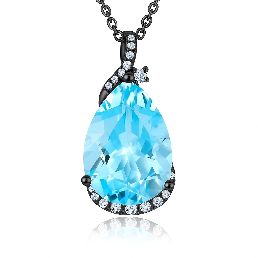 Make a statement that's both bold and timeless with our Sky Blue Topaz and White Zircon Pear Necklace! With its natural Sky Blue Topaz and White Zircon rounds, this pendant is the epitome of sophistication and style. And with its durable Rhodium over Sterling Silver construction, you can trust that it will stay looking fabulous for years to come. Featuring a 21x11mm pendant and an 18" chain, this necklace is the perfect way to add some sparkle to any outfit. Don't settle for ordinary jewelry - make a statement with our Sky Blue Topaz and White Zircon Pear Necklace today!