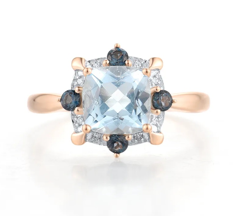 Introducing the epitome of elegance and sophistication - the Sky Blue Topaz, London Blue Topaz & Diamond Halo Ring in 14K Rose Gold 2.15ctw. Crafted with utmost precision, this exquisite ring is a true testament to the beauty of Blue Topaz and the brilliance of diamonds. The lustrous Sky Blue and London Blue Topaz stones are carefully selected for their captivating hues, enhanced by the delicate 14K Rose Gold band. The dazzling diamond halo surrounding the gemstones adds a touch of glamour and luxury. Make a statement with this stunning piece of art that seamlessly combines timeless charm and contemporary style.